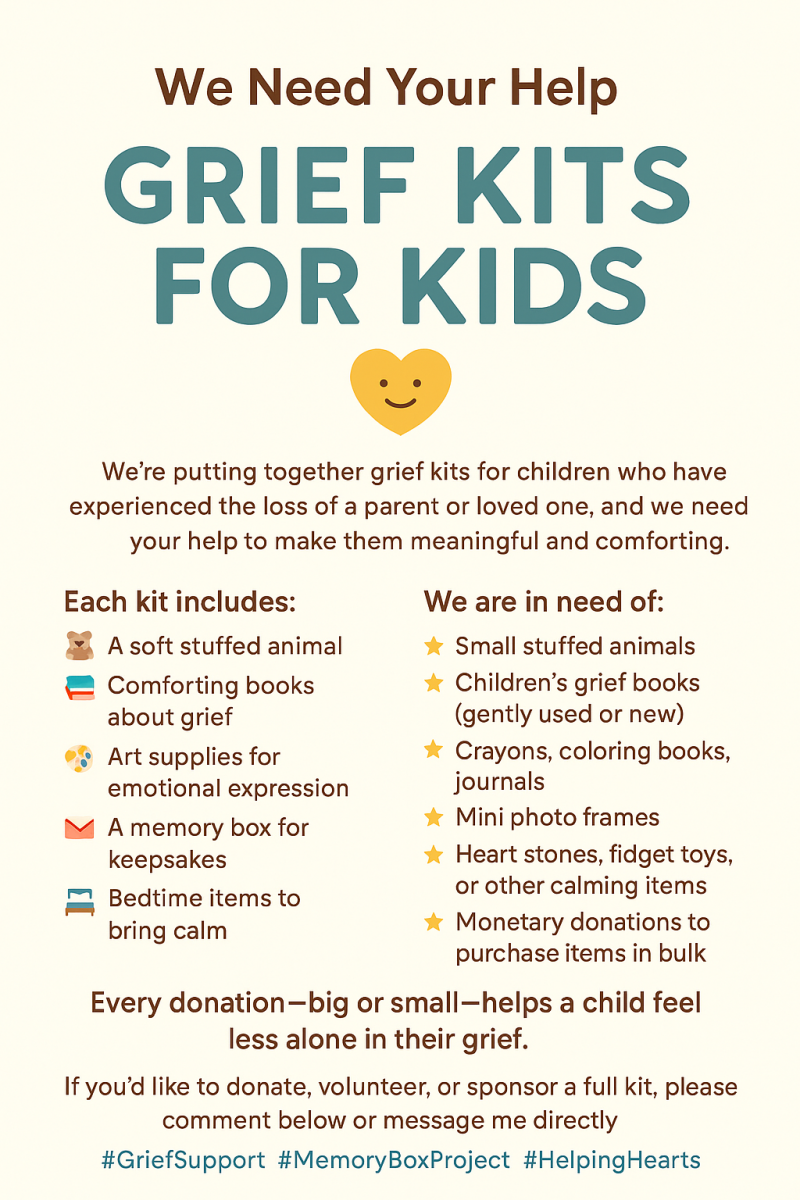 Please feel free to reach out to us for whatever kind of support you may need at this time. We are here to support you during your time of mourning.